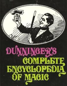 Dunninger’s Complete Encyclopedia of Magic by Joseph Dunninger is a 288-page, 9” x 11” hardcover book first published as a combined single tome in 1967 by Lyle Stuart, Inc. Later editions were printed in 1970 by Spring Books and again in 1988 by Bonanza Books.