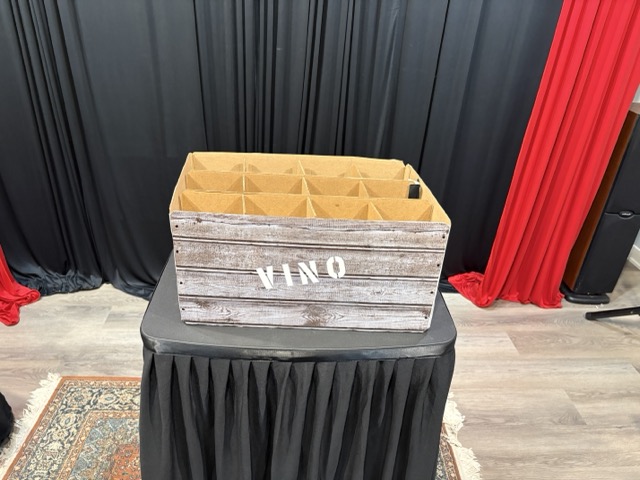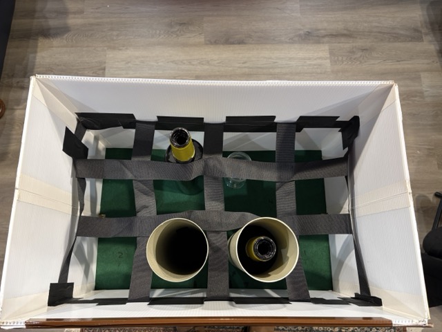 - The box has a lid and is tall enough to completely encase the bottles. This keeps the props hidden before and after performing.