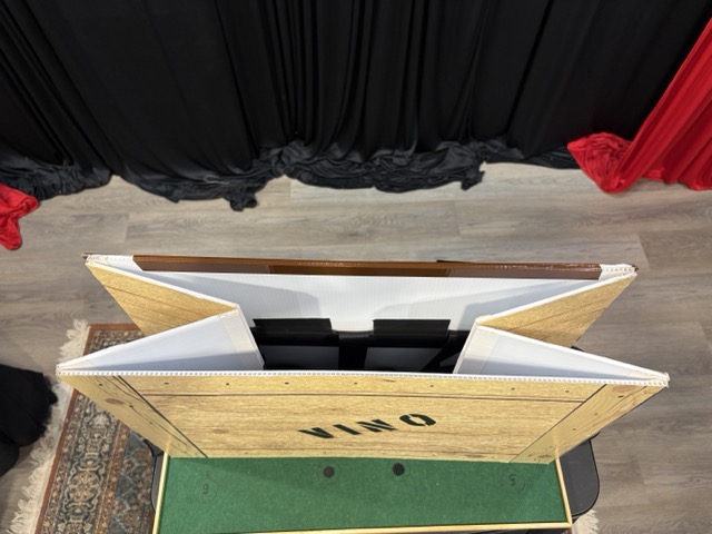 - Handles on the side let you lift the tray and box together and move it around back stage.
