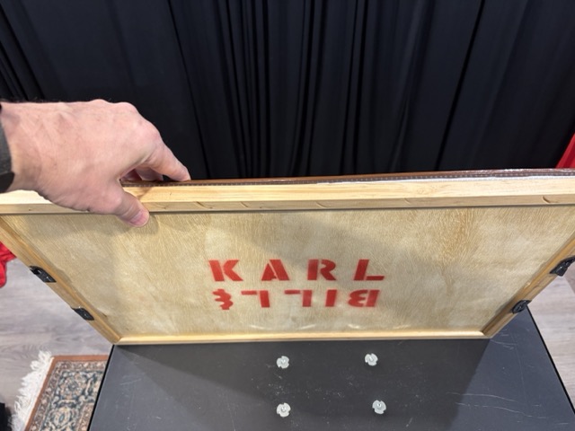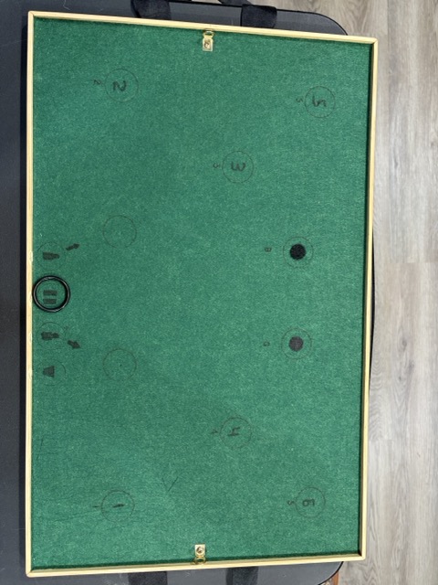 - The tray has two small brass keepers on the ends to keep the box unfolded fully when on the tray. It also has two nylon tape handles for lifting.