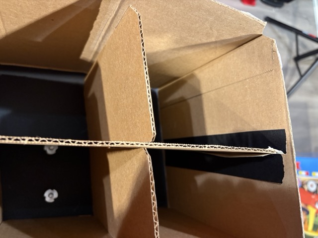 - The box is built out of corrugated plastic and contact paper with Gaffers's tape for assembly.